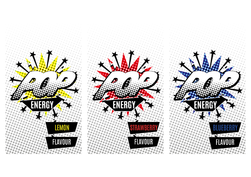 Pop Energy Corporate design for a fictional energy drink brand Dimensioning Colour Fonts Label for cans Poster for a promotional banner